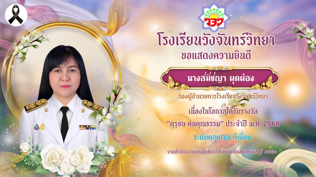 โรงเรียนวังจันทร์วิทยา ขอแสดงความยินดีกับคณะผู้บริหารและคณะครู เนื่องในโอกาสได้รับรางวัล "คุรุชน คนคุณธรรม" ประจำปี พ.ศ.2568 จากสำนักงานเขตพื้นที่การศึกษามัธยมศึกษาชลบุรี ระยอง