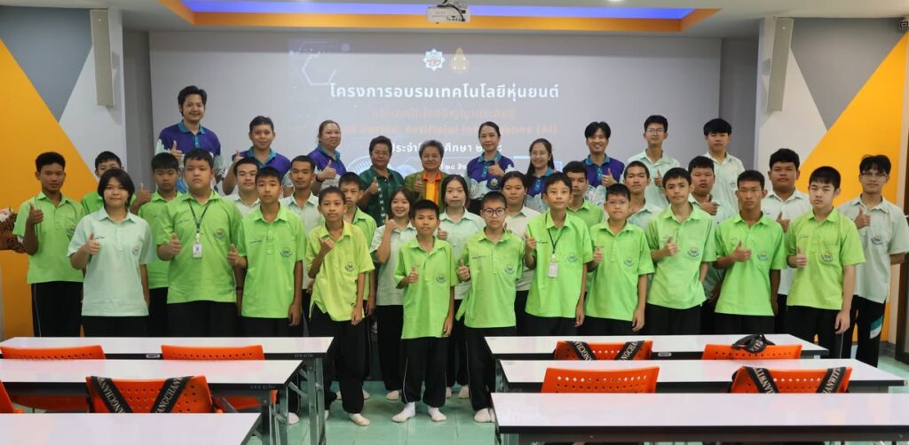 วันที่ 28-29 สิงหาคม 2568 นายศักดา สรรเสริญ ผู้อำนวยการโรงเรียนวังจันทร์วิทยา มอบหมายให้ว่าที่ร้อยตรีหญิงปิยะวรินทร์ เชื้อเอี่ยม ตำแหน่ง ครู วิทยฐานะ ชำนาญการพิเศษ รักษาการในตำแหน่งผู้อำนวยการ เป็นประธานในพิธีเปิดโครงการอบรมเทคโนโลยีหุ่นยนต์และเทคโนโลยีปัญญาประดิษฐ์ AI ให้กับนักเรียนระดับชั้นมัธยมศึกษาตอนต้นและนักเรียนชั้นมัธยมศึกษาตอนปลาย จำนวนทั้งสิ้น 30 คน จัดโดยกลุ่มสาระการเรียนรู้วิทยาศาสตร์และเทคโนโลยี (คอมพิวเตอร์)