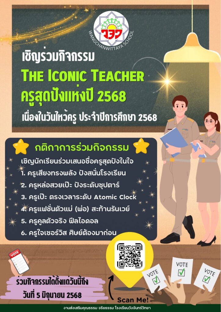 📍 วันไหว้ครู 2568 นี้ มีกิจกรรมให้นักเรียนร่วมลงคะแนน รางวัล THE ICONIC TEACHER ครูสุดปังแห่งปี 2568 ✨✨