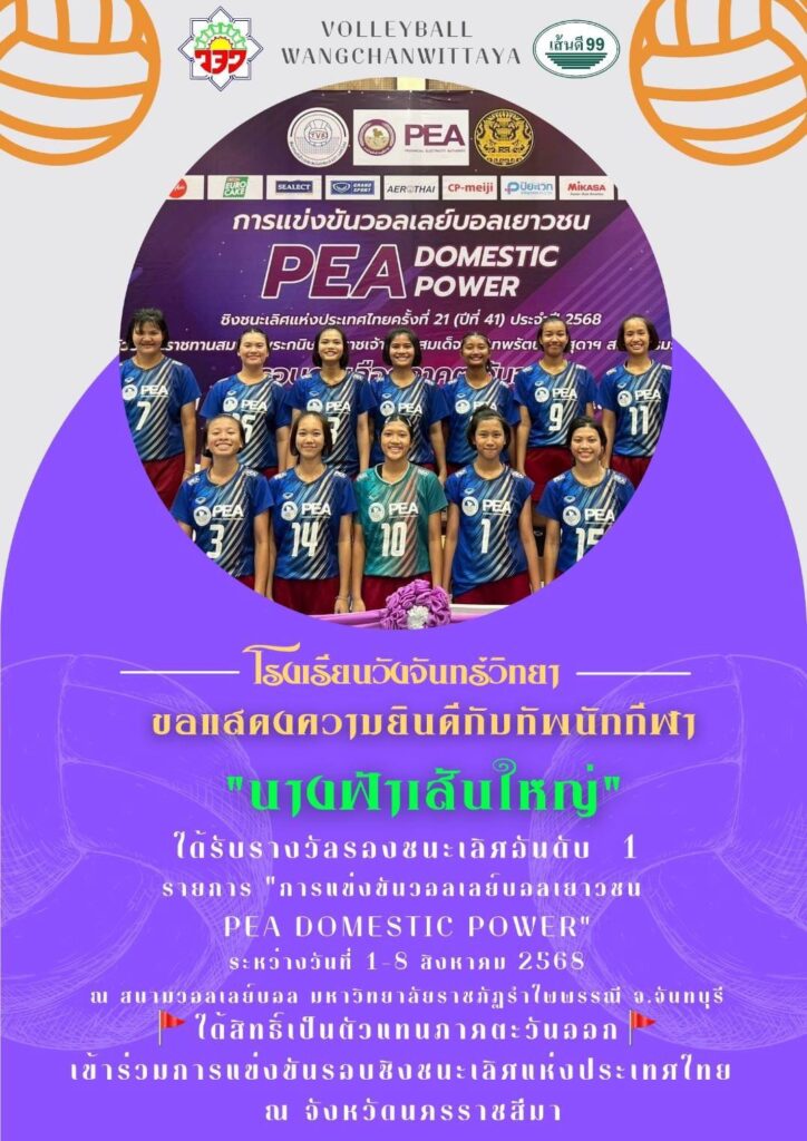 ขอแสดงความยินดีกับนักกีฬาวอลเลย์บอล "นางฟ้าเส้นใหญ่" ได้รับรางวัล #รองชนะเลิศอันดับ1 รายการ "การแข่งขันวอลเลย์บอลเยาวชน PEA DOMESTIC POWER ระหว่างวันที่ 1-8 สิงหาคม 2568