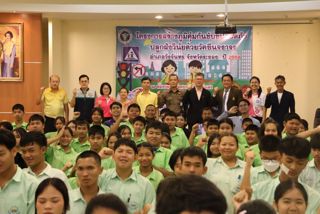 วันที่ 24 มิถุนายน 2568 นายศักดา สรรเสริญ ผู้อำนวยการโรงเรียนวังจันทร์วิทยา มอบหมายให้นายจรัล ห้อยระย้า หัวหน้างานจราจรวินัยนักเรียน กลุ่มบริหารทั่วไป นำนักเรียนเข้าร่วมอบรมโครงการสร้างภูมิคุ้มกันขับขี่ปลอดภัย ปลูกฝังวินัยวัคซีนจราจร ประจำปีงบประมาณ 2568 จัดโดยสำนักงานสาธารณสุขอำเภอวังจันทร์ มีวัตถุประสงค์เพื่อให้นักเรียนได้ความรู้ความเข้าใจเกี่ยวกับการขับขี่รถจักรยานยนต์อย่างปลอดภัย ณ ห้องประชุมเทศบาลตำบลชุมแสง