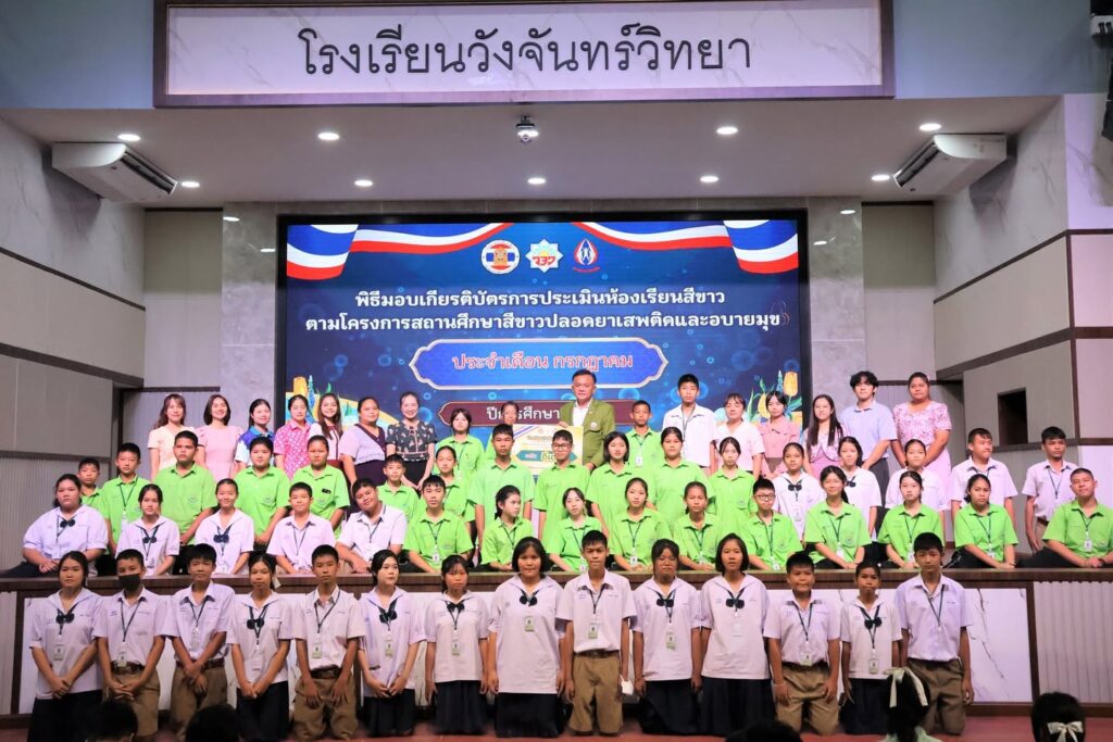 นที่ 19 สิงหาคม 2568 นายศักดา สรรเสริญ ผู้อำนวยการโรงเรียนวังจันทร์วิทยา ให้เกียรติมอบเกียรติบัตรห้องเรียนสีขาวดีเด่น ประจำเดือน กรกฎาคม 2568 ตามโครงการสถานศึกษาสีขาว ปลอดยาเสพติดและอบายมุข ให้แก่นักเรียนห้องเรียนสีขาวระดับดีเด่น ณ หอประชุมจันทร์ดา โรงเรียนวังจันทร์วิทยา