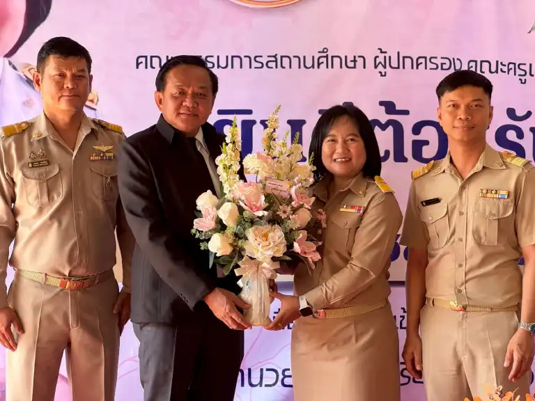 วันที่ 8 ธันวาคม 2568 นายศักดา สรรเสริญ ผู้อำนวยการโรงเรียนวังจันทร์วิทยา พร้อมด้วยนายสถาพร พวงแก้ว และนายศุภากร งามเสงี่ยม รองผู้อำนวยการโรงเรียน ร่วมมอบช่อดอกไม้และแสดงความยินดีแก่ นางสาวอัญชลี นามโคตร เนื่องในโอกาสย้ายมาดำรงตำแหน่ง ผู้อำนวยการโรงเรียนบ้านยางเอน ณ โรงเรียนบ้านยางเอน จังหวัดระยอง ![]()