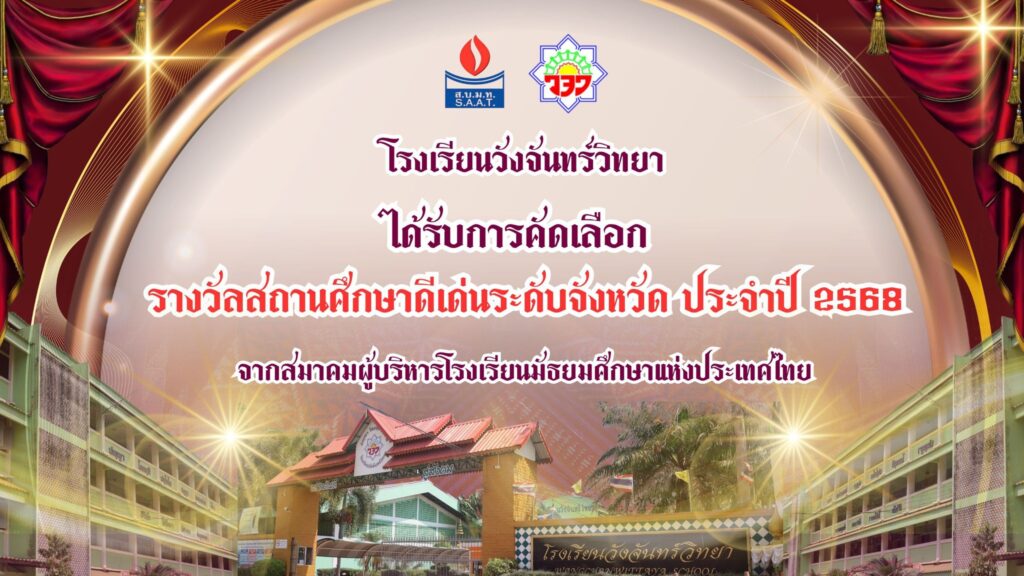 โรงเรียนวังจันทร์วิทยา ได้รับรางวัล #สถานศึกษาดีเด่นระดับจังหวัด #ประจำปี2568 จากสมาคมผู้บริหารโรงเรียนมัธยมศึกษาแห่งประเทศไทย